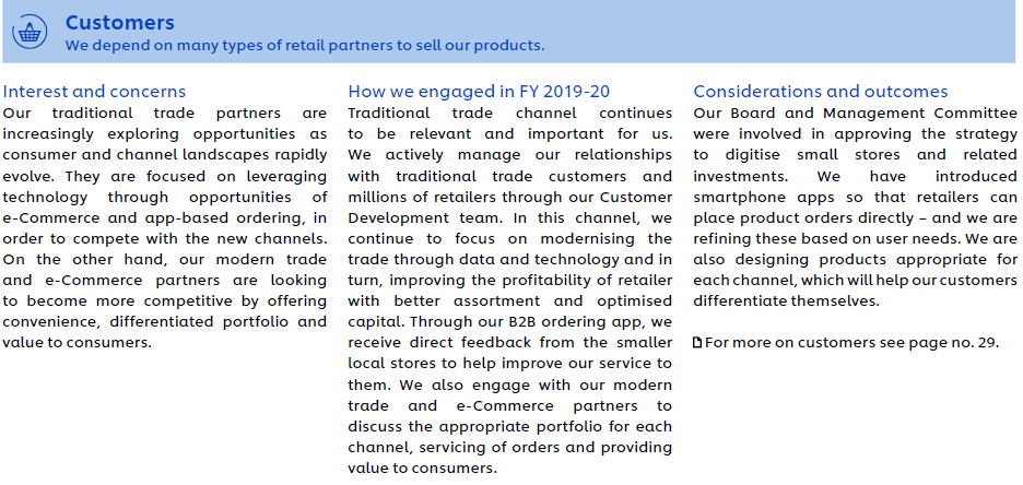 In the last quarter of financial year 2019-20, we have seen an unprecedented global breakout of the COVID-19 pandemic leading to a humanitarian crisis, lockdown across many countries and a significant economic fallout. Around the world, growth has decelerated markedly. In India, the economic impact of COVID-19 is trickling in on the backdrop of an already challenging macro-economic environment. In 2019, we also witnessed some weather disruptions in the form of late onset of monsoon in parts of the country, post-monsoon heavy showers and a delayed winter. Global trade dynamics, volatile commodity cycles and climate concerns continue to increase the uncertainty further. Conditions like these create challenges for companies and categories across the spectrum. On the other hand, new technologies are changing the landscape of the consumer goods market, bringing opportunities for brands and consumers alike. Consumers are shopping through more diverse channels and smaller local brands as well as digital-first brands are increasingly entering the market.