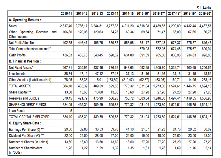 Net Sales for the financial year 2019- 20 stood at Rs 4,487.57 crores against Rs 4,432.44 crores of previous year.