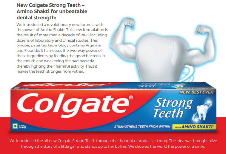 Innovation continues to be a key driver for growth. The past year saw a healthy stream of innovation being brought to the market. Pivotal among these was the relaunch of our flagship variant, Colgate Dental Cream Strong Teeth. This patented technology helps to strengthen teeth from within. It was created over a decade of research with more than 18,000 people in over 20 clinicals and is a true revolution in oral health.