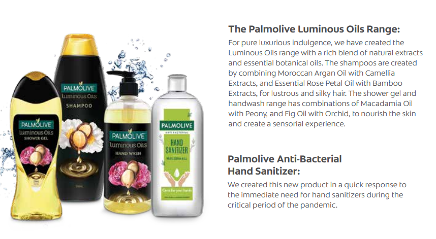 The Palmolive portfolio saw some ‘on-trend’ innovation including the launch of our Luminous Oils range of Body Wash and Liquid hand soaps. In response to an amplified focus on health and hygiene, we also launched our Palmolive Hand Sanitizer. we stepped up our focus on e-commerce with a fully dedicated cross-functional team. Our progress in advanced analytics included the use of tools such as predictive modelling to improve the quality of assortment across retail environments.