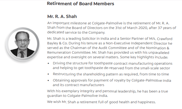 Despite challenging business and economic environment, your Company continues to sustain its leadership position in both the Toothpaste and Toothbrush categories during the financial year 2019-20.